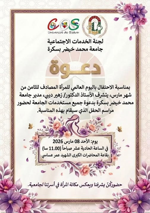 جامعة محمد خيضر ص ب 145 ق ر ، 07000 بسكرة ، الجزائر