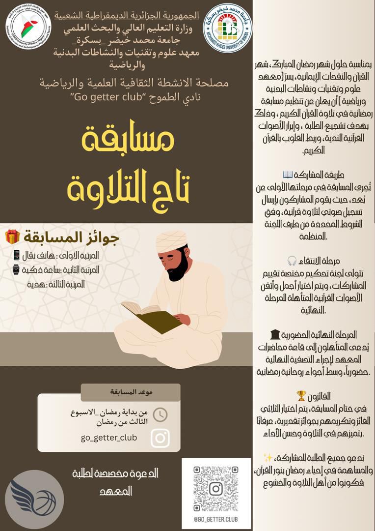 مسابقة في تلاوة القرآن الكريم- رمضان 2026 - موجهة لطلبة المعهد