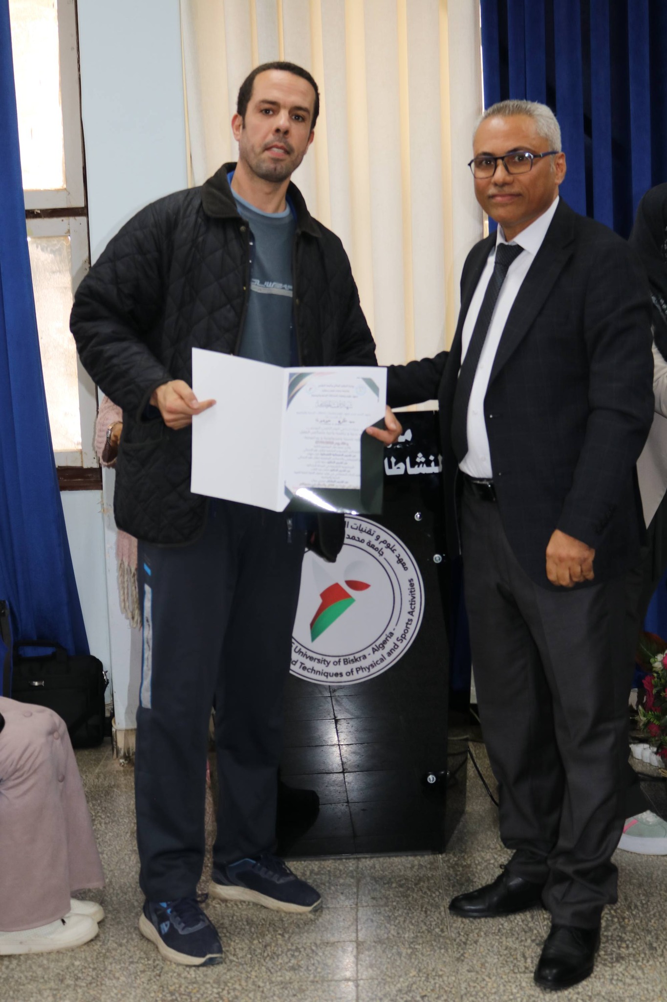 صبيحة يوم الثلاثاء 27 جانفي 2026 نظم معهد علوم و تقنيات النشاطات البنية و الرياضية بجامعة بسكرة فعاليات اليوم التكويني الموسوم ب "نحو تربية بدنية ورياضية واعية بخصائص الطفل" بحضور مدير المعهد ، مدير الشبيبة والرياضة ، الامين العام للرابطة الولائية للرياضة المدرسية اساتذة المعهد وموظفيه ، اساتذة التعليم الابتدائي للتربية البدنية والرياضية وطلبة المعهد حيث تم تقديم مجموعة من المحاضرات القيمة التي تشرح هذا الموضوع جيدا. فالشكر موصول لكل من ساهم في انجاح اليوم التكويني.